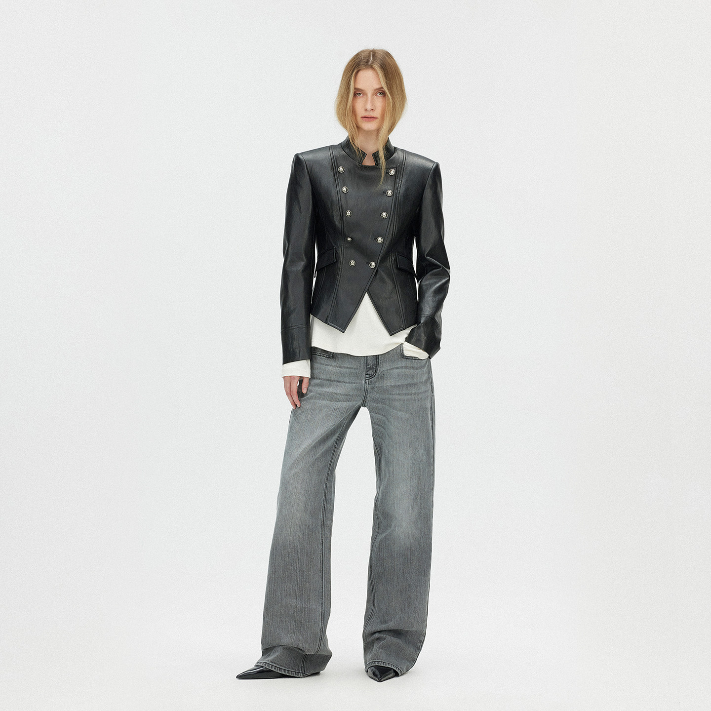 saumple studysymp Napoleon metal double-breasted X-neck shoulder jacket
