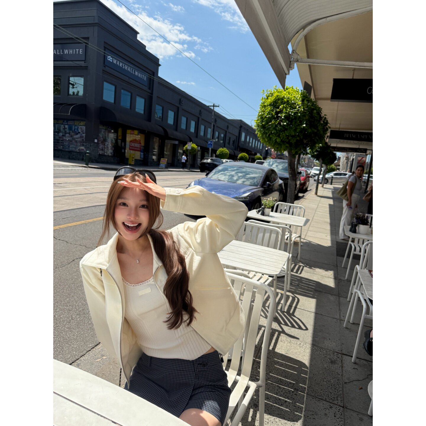 yangzifan Lyocell linen cotton Xiaoxiang minimalist and versatile with classic zipper white jacket jacket for women