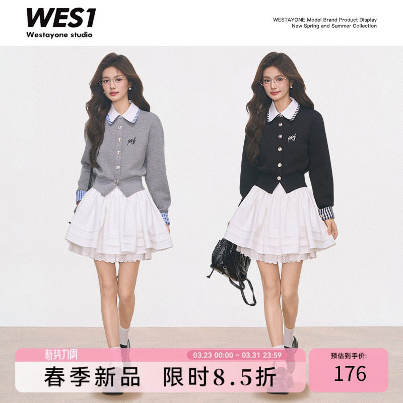 [New] WESTAYONE knitted cardigan jacket for small women lazy style high-end + white puffy skirt