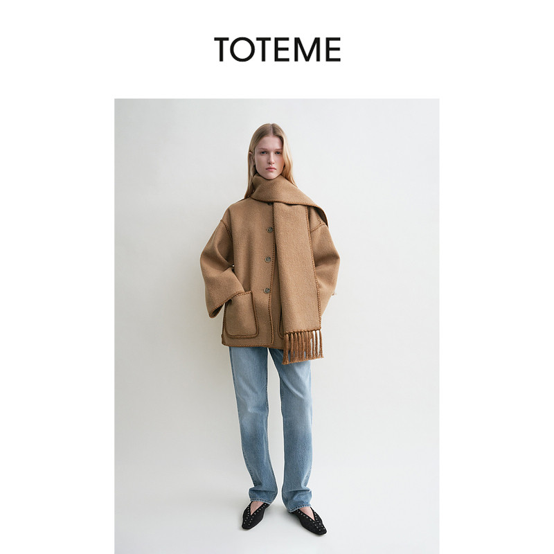 【End of Season Discount】TOTEME Women's Camel Classic Wool Embroidered Loose Fringe Scarf Jacket Jacket