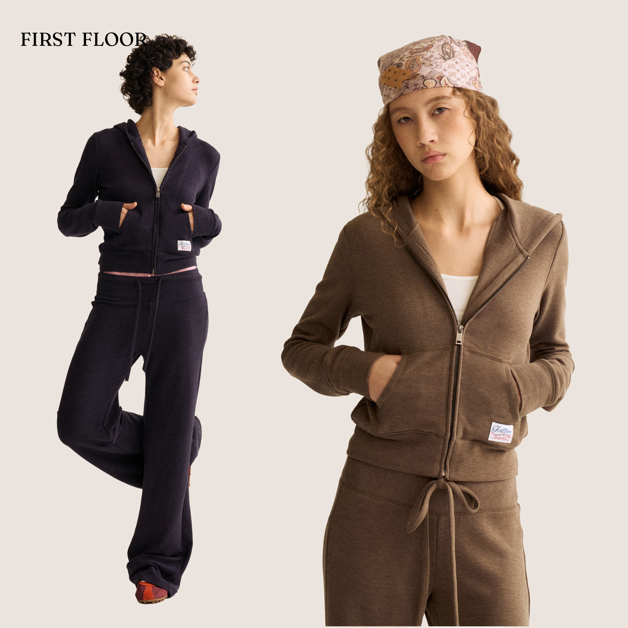 "Sun Leyan's Same Style" FIRSTFLOOR actually wears a nude slim slim retro short casual hooded sweatshirt set