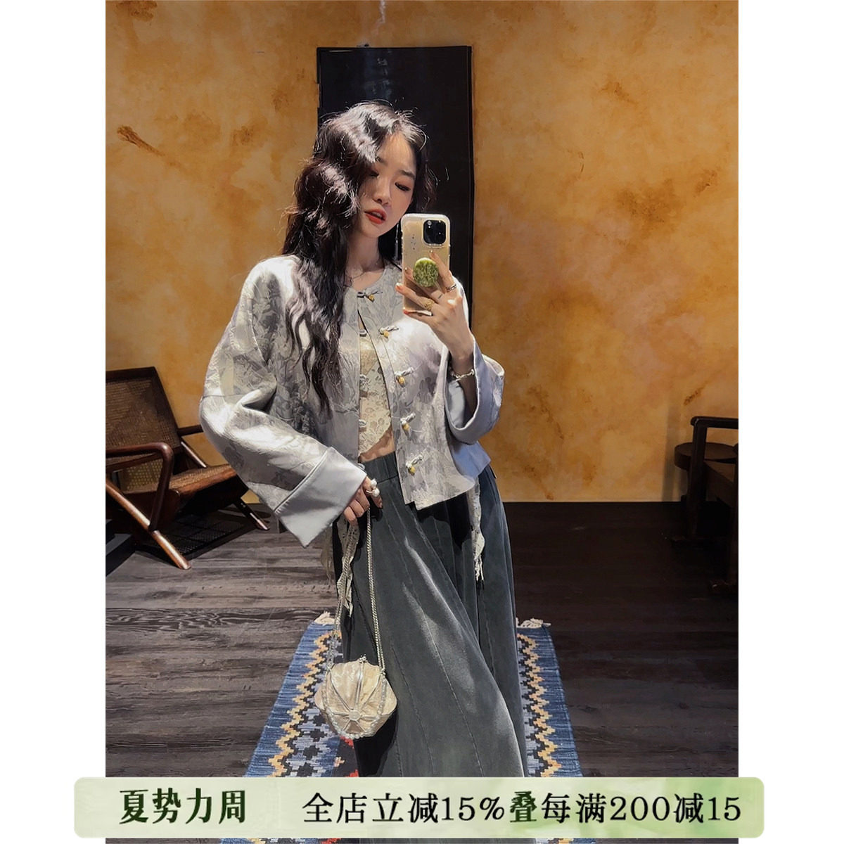 Sanji Black Flower [Jade Brocade] National Style New Chinese Top Early Autumn Jacket Women's Spring and Autumn 2024 New Style is super good-looking