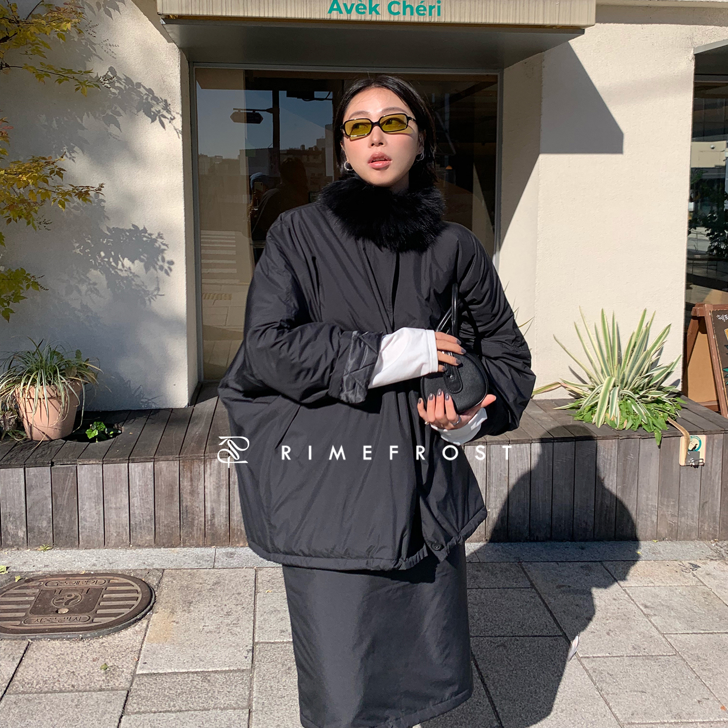 RIMEFROST25/W Finnish imported blue fox fur scarf/3M cotton loose cotton top/3M cotton skirt