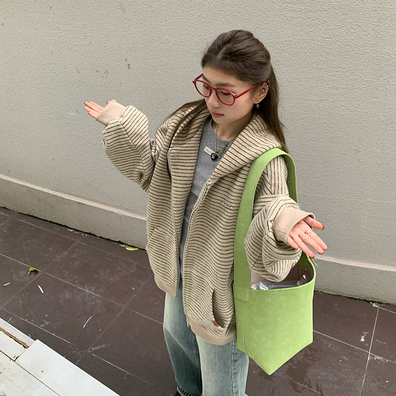 Where is the orange tree, striped hooded sweatshirt jacket, women's autumn lazy style, loose casual versatile long-sleeved top