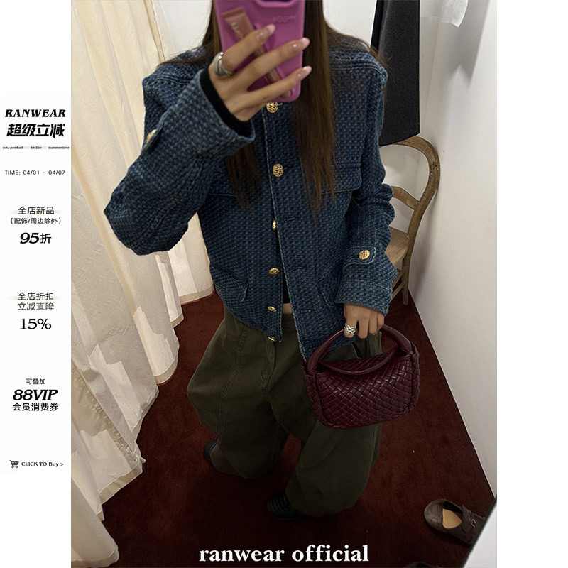 King Prince Spring New Dark Blue Vintage Stand Collar Denim Small Fragrance Jacket Women's Casual Jacket Women's Fashion Jacket