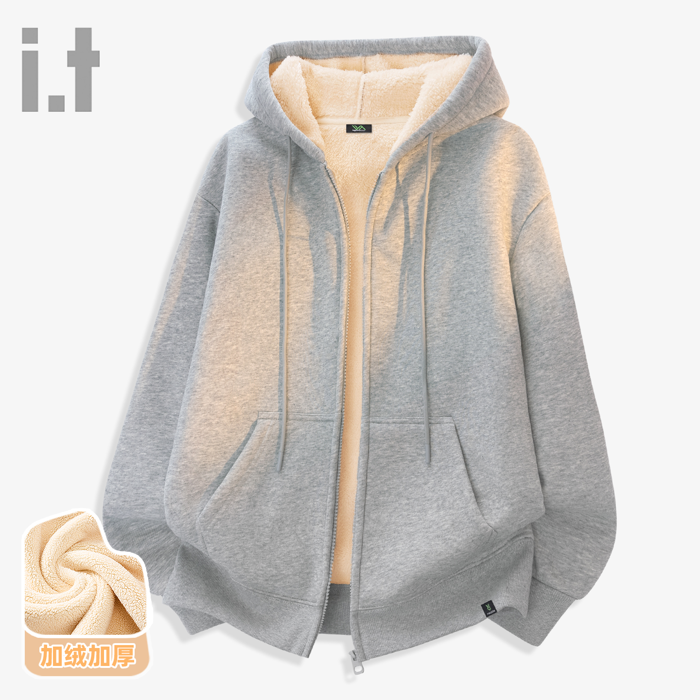 it Fingercroxx Plush Jacket Women's 2025 New Winter Lamb Down Hoodie American Gray Sweatshirt Q