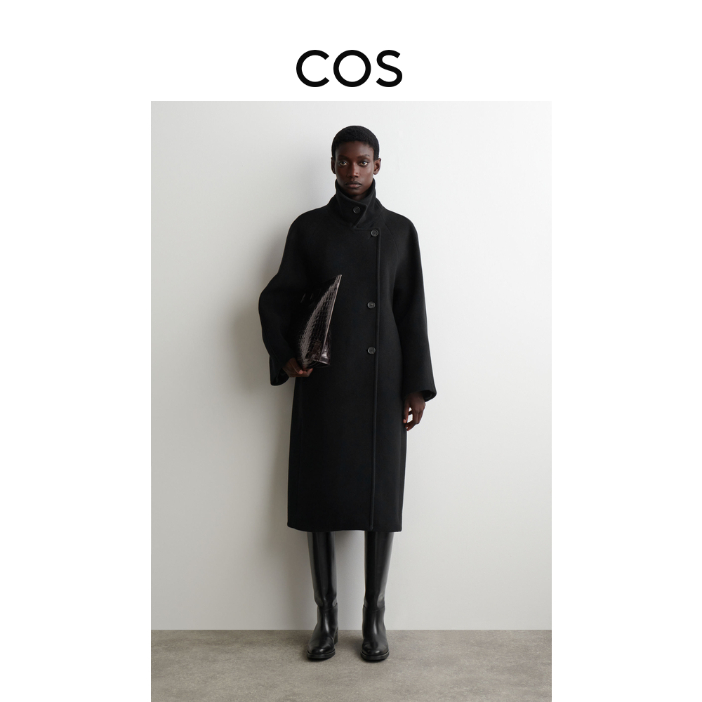 COS Women's Loose Fit Quiet Luxury Style Wool Blend Coat Black 2025 Fall New 1245359003