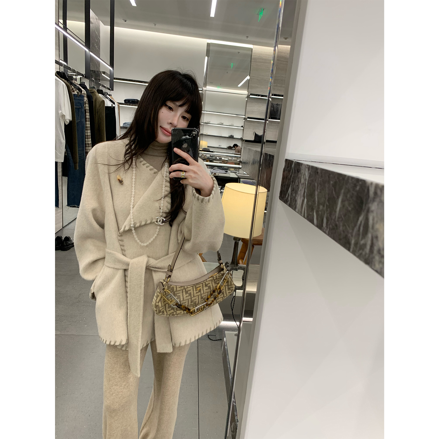 ASM ANNA/Gentle atmosphere camel wool silk wool handmade sheepskin lock edge detail short coat for women