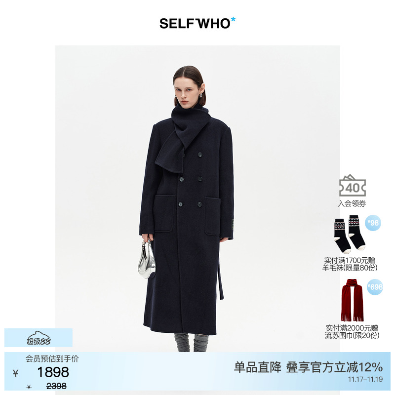 [Shen Yue's same style] SELFWHO sheep wool long scarf collar wool jacket women's winter new 100 high support coat