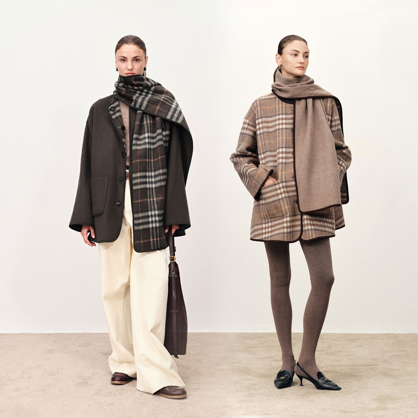 Ye Tong with Fabrique Thames twin plaid coat, cropped wool cashmere woolen jacket cape girl