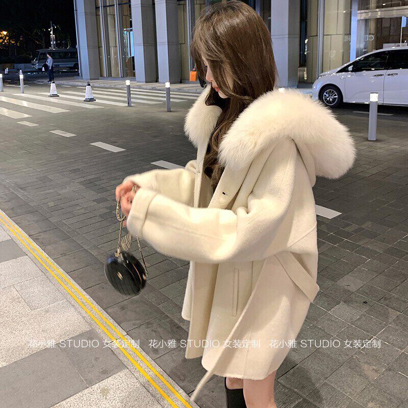 After the snow, the first sunny 2025 new woolen jacket fox fur collar hooded long reversible wool coat women's autumn and winter