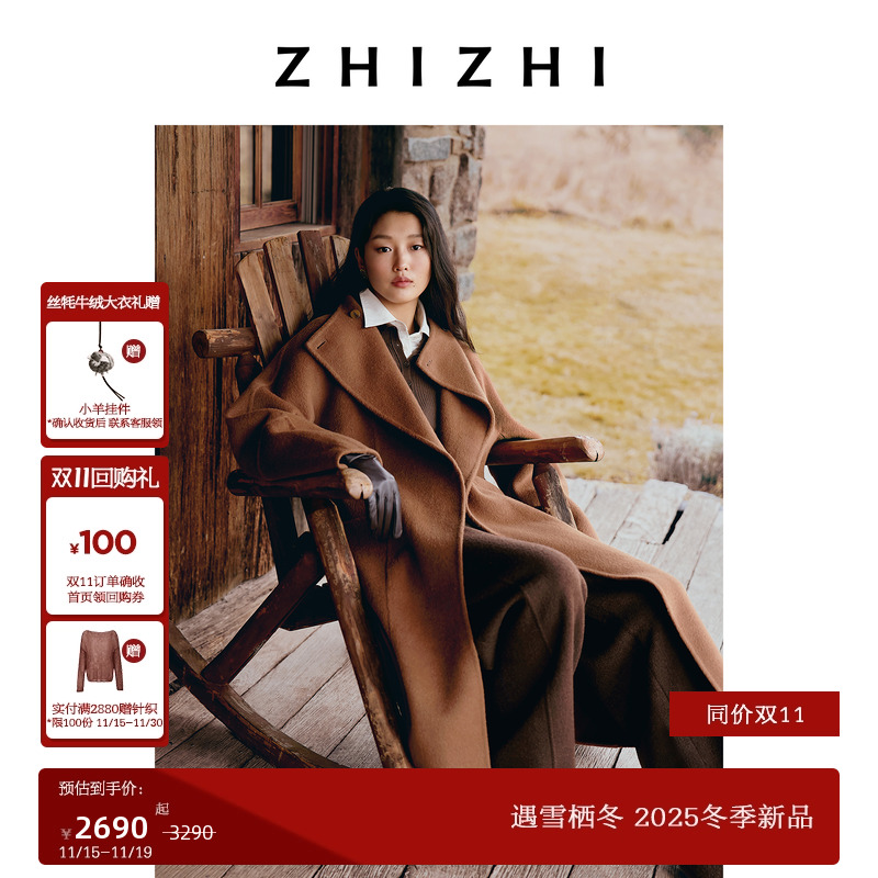 [Star Same Style] Zhizhi Shihu Xian Silk Yak Velvet Long Coat Jacket Women's 25 Winter New Romance