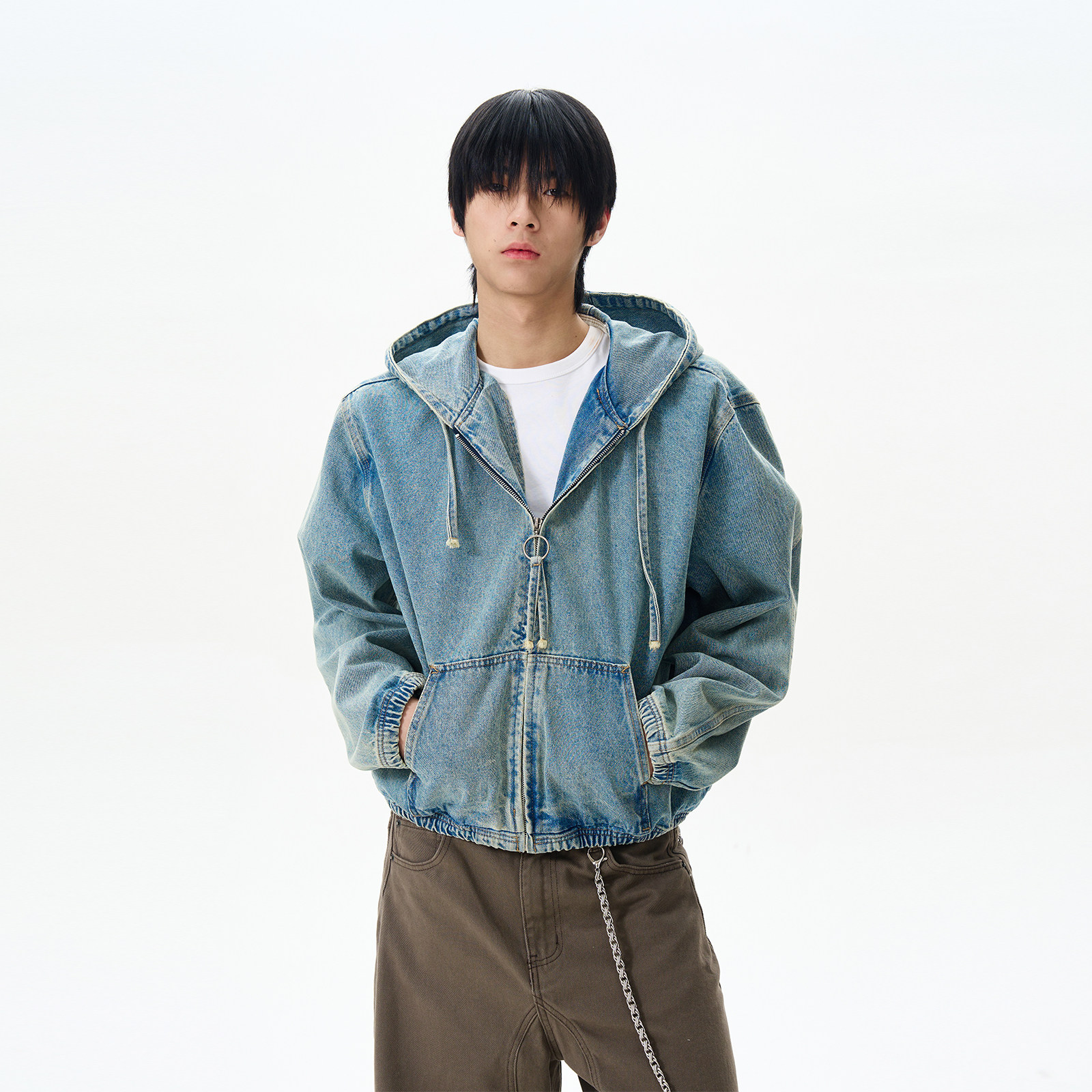 Tailman's shop, spring and autumn, American high street hooded denim jacket, men's trendy brand, high-end sense ruffian, handsome niche jacket, couple
