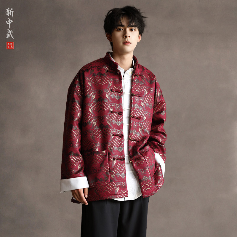 Chinese style autumn and winter embroidery casual casual Tang jacket men's loose plus size crew neck tunic jacket tea suit