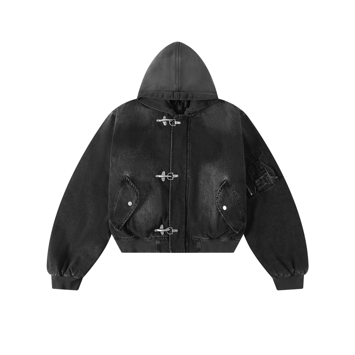 GXFortune American Airplane Buckle Cargo Cow Jacket Men's and Women's Short Pleated Denim Jacket