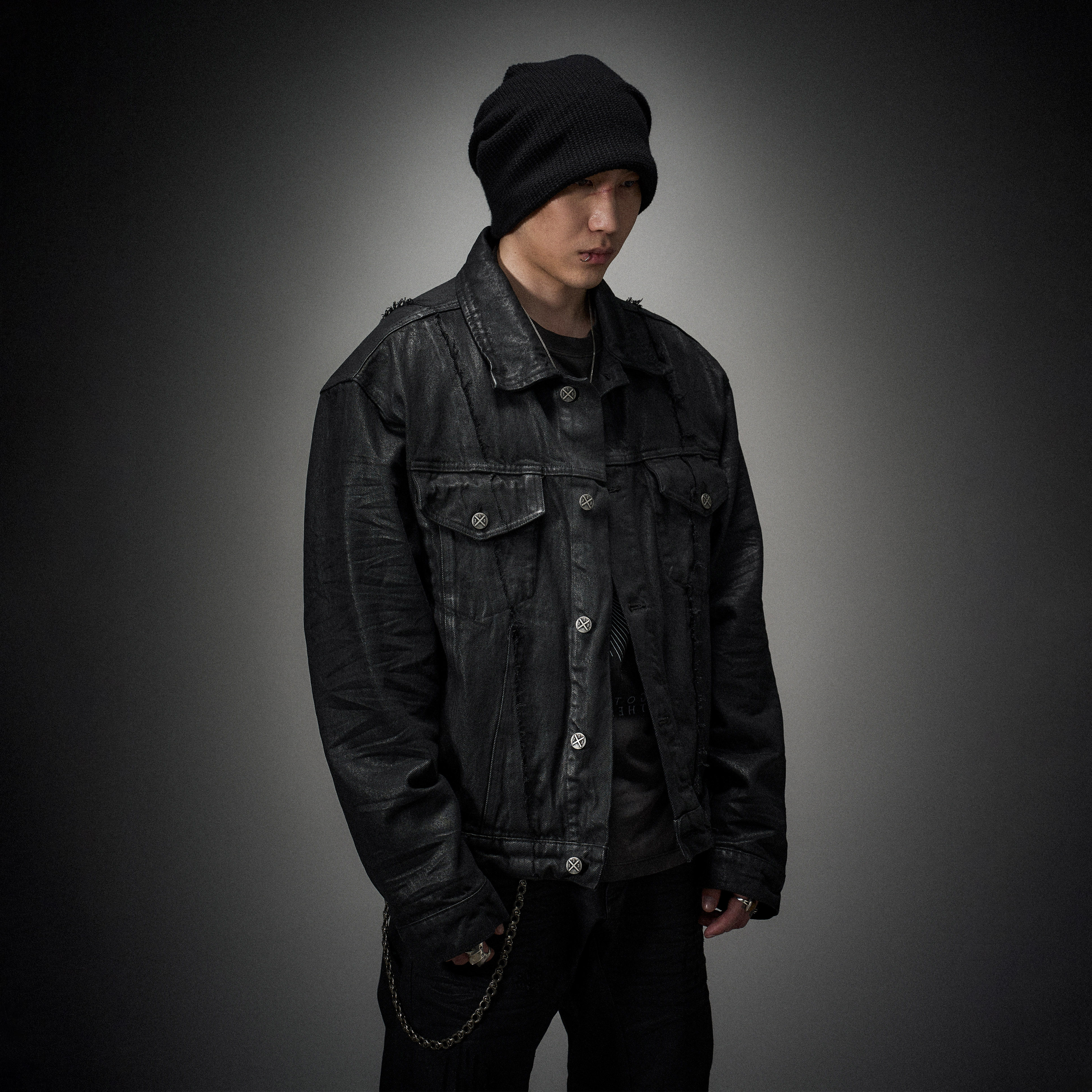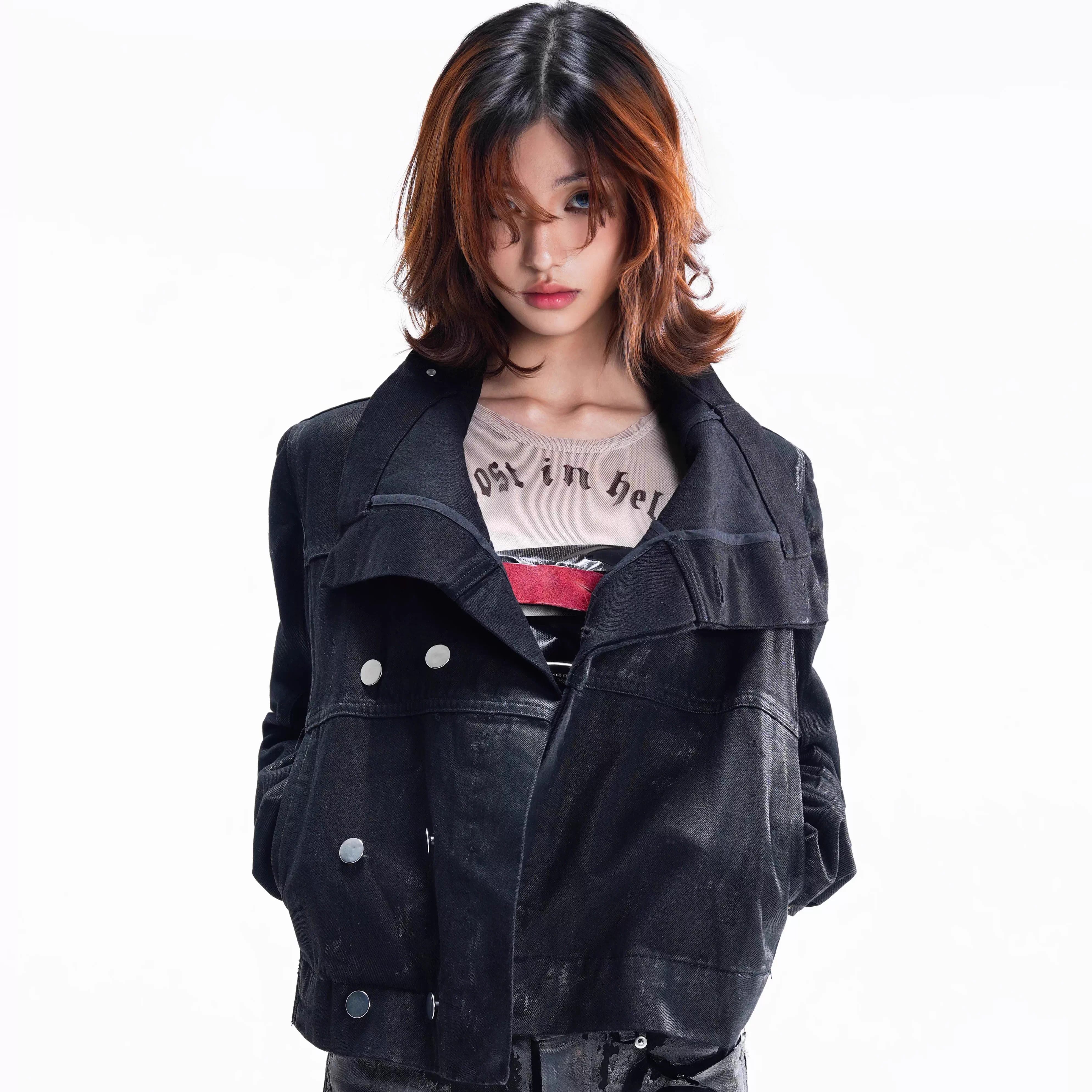 LOST IN HELL 25FW Big Lapel Brush Wax Coated Punk Trend Heavy Denim Men's and Women's Jacket