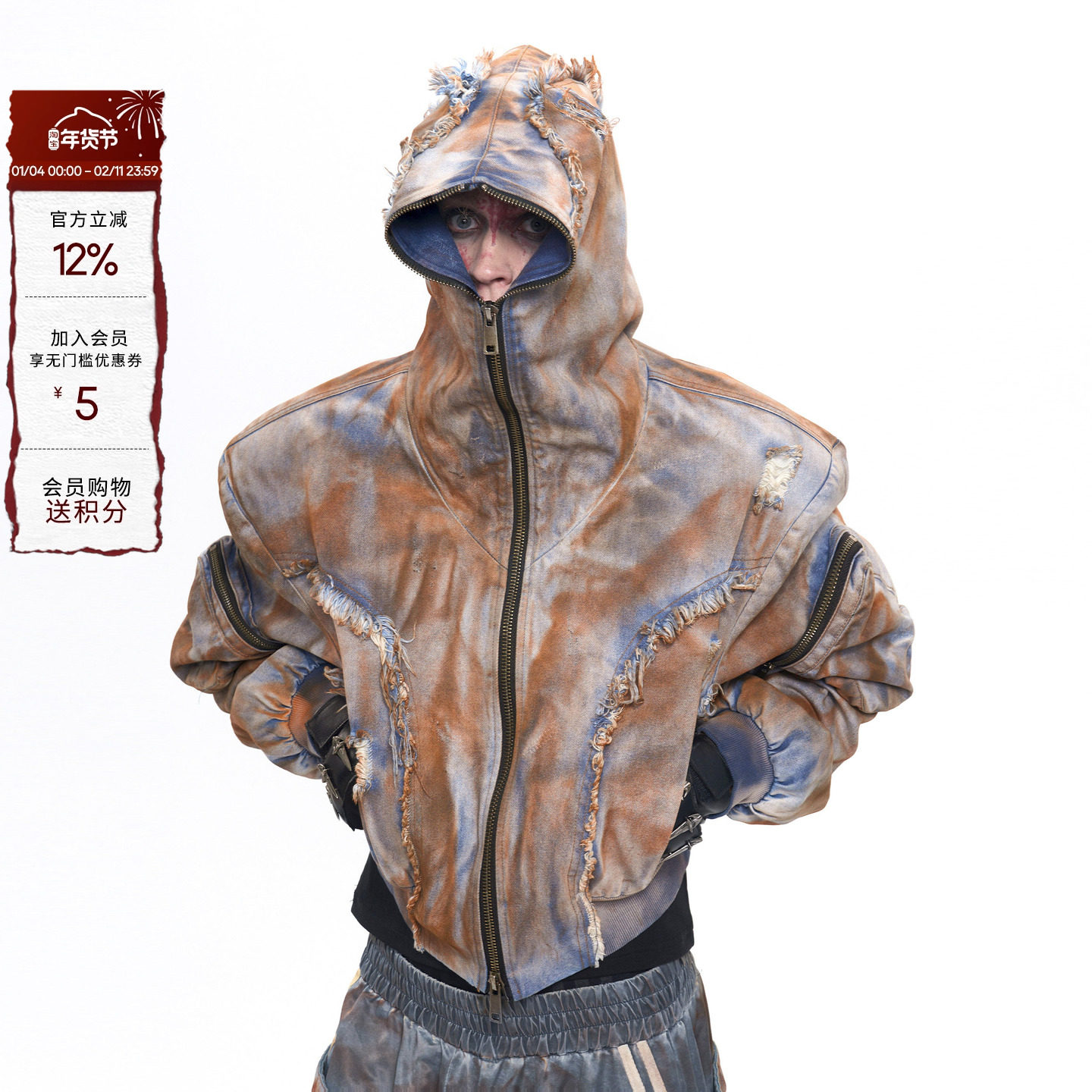 CulturE niche heavy industry deconstructs old shoulder pads hooded denim jacket set metal embellished jeans men