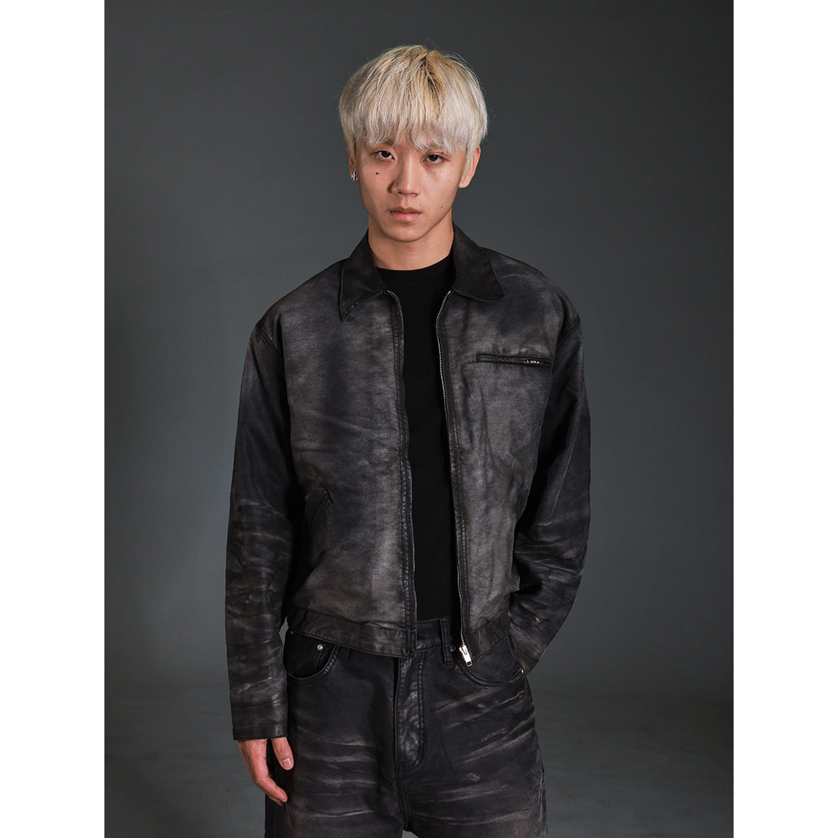 Big Production mottled painted black mole skin half-brushed wax jacket j97 jacket coat