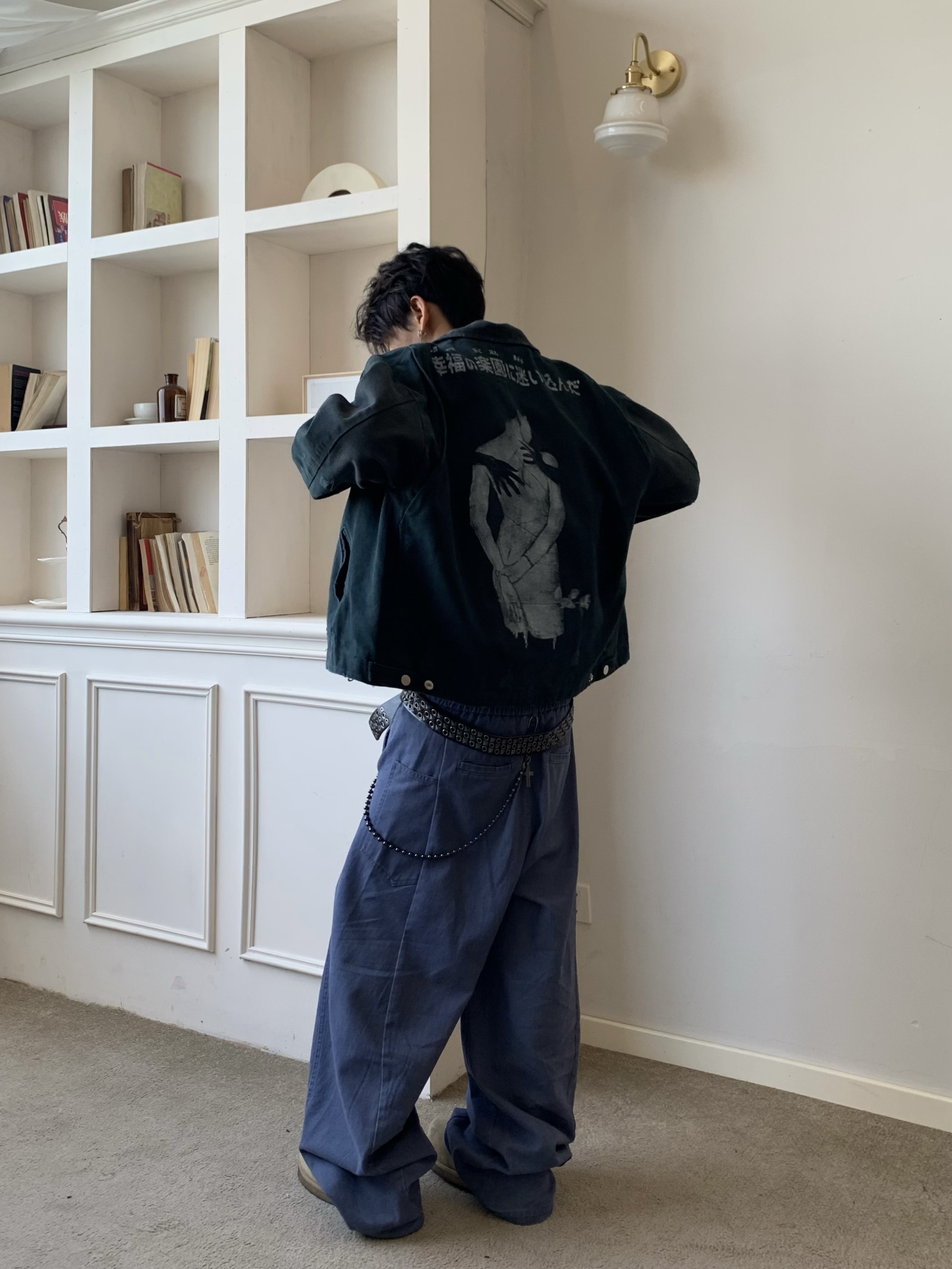 jiwuus spring new Chinese retro national style improved cardigan robe for boys and girls loose black denim jacket trend