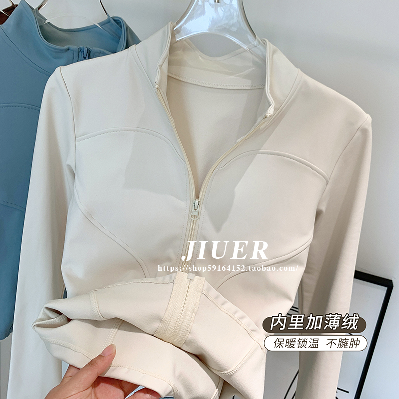 Soft and glutinous quick-drying running warmth fleece warm shell stand-up collar zipper sports jacket slim slimming long-sleeved yoga clothes