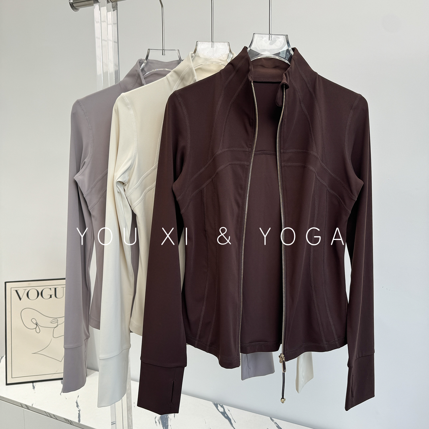 lulu same yoga clothes, women's spring and autumn stand-up collar jacket, sports fitness cycling jacket, slimming running clothes top