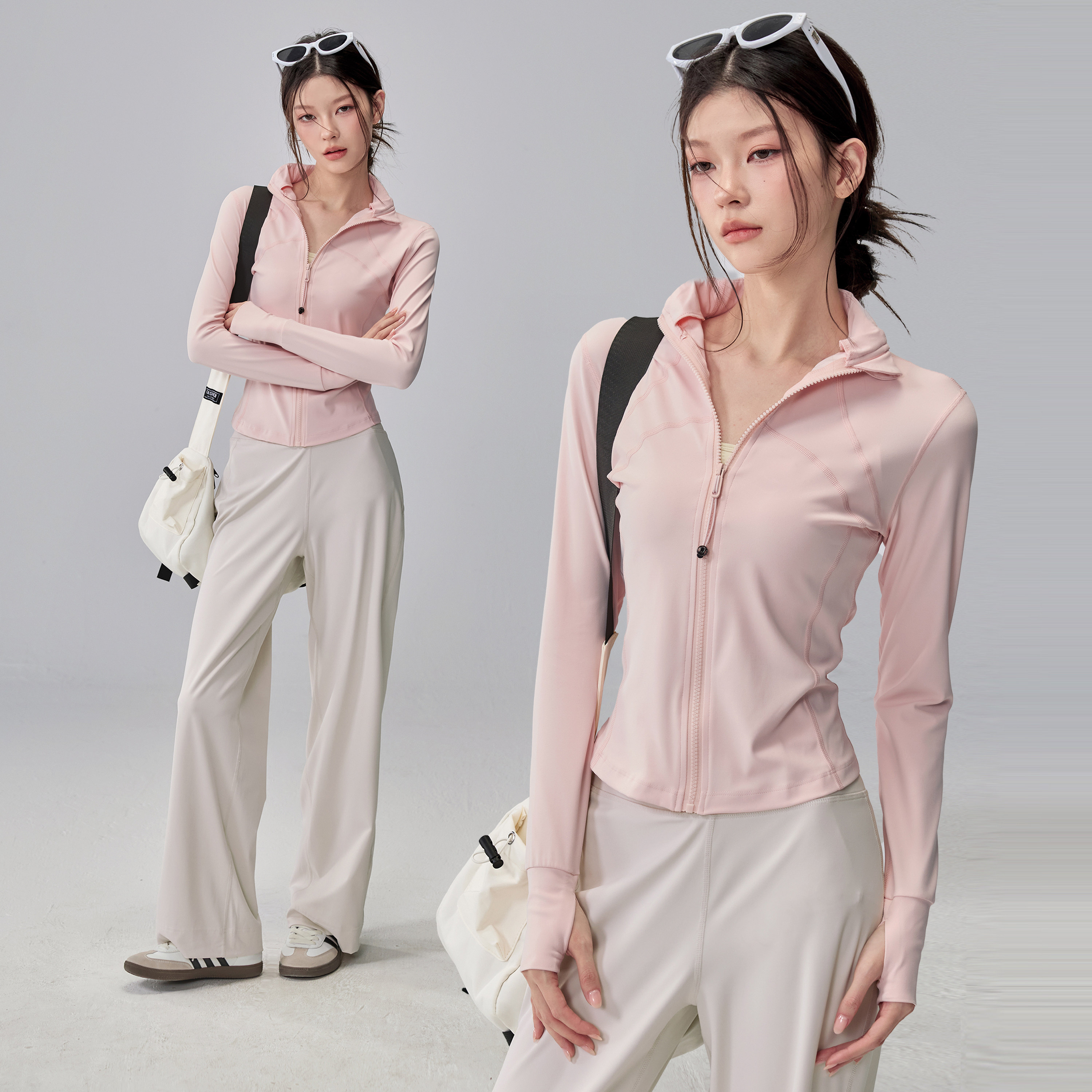 Yoga clothes jacket women's slim quick dry stand-up collar autumn running sports top Pilates training fitness clothes long sleeves