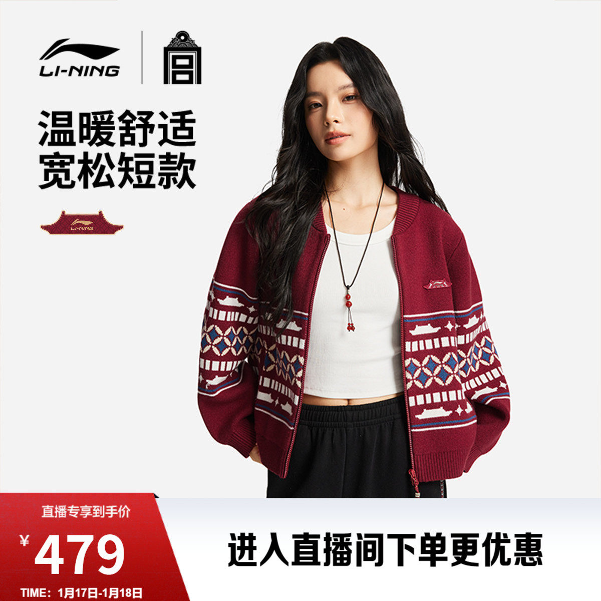 Li Ning Forbidden City co-branded sweater women's spring 2026 new New Year red casual knitted shirt Year of the Horse sportswear