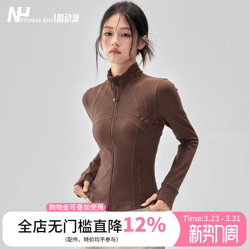 Fitness girls stand-up collar yoga clothes jacket threaded Pilates training long sleeves slim slimming sports top autumn and winter