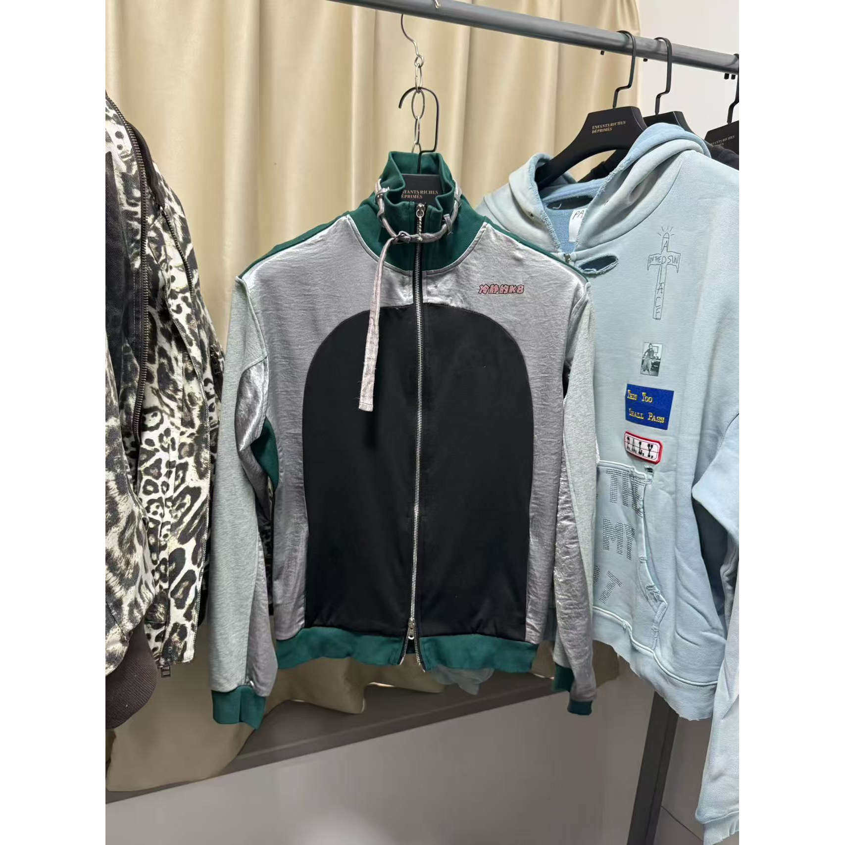 [Cortis Martin same] Vivi Saturn embroidery turtleneck strap silver green color-blocked zip jacket jacket