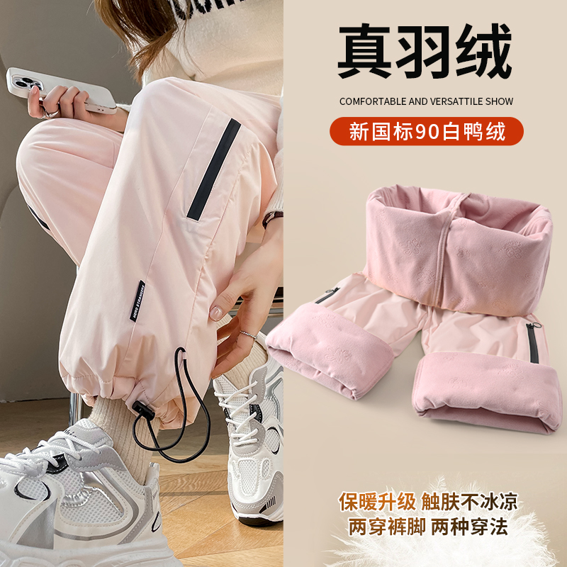 White duck down banana down pants, women wear minus 40 degrees plus fleece in winter, thickened and cold-proof and warm Harbin cotton pants