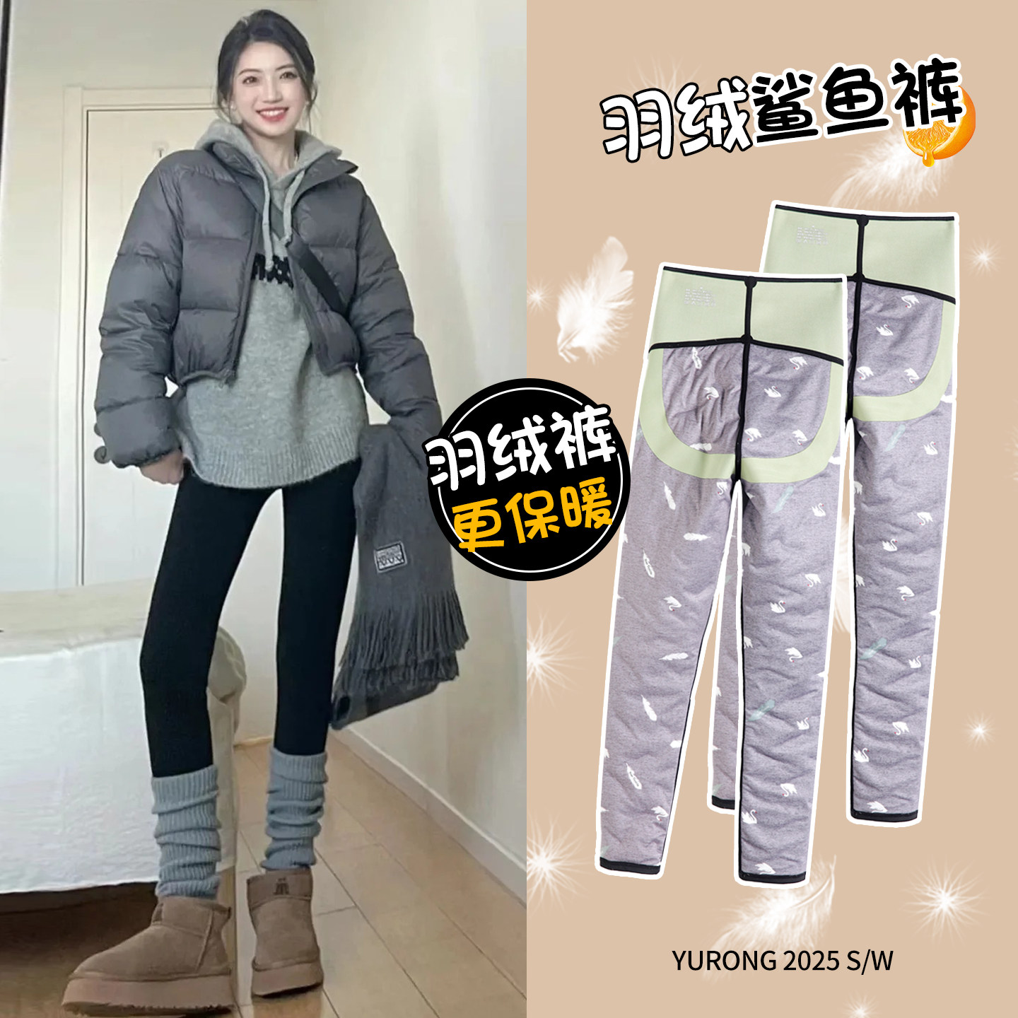 Extended shark down pants, women's wear, 2025 winter new cotton pants, high-waisted yoga, slimming and thickened warm leggings