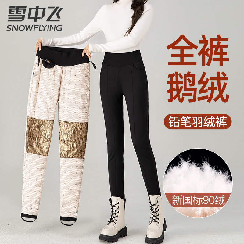Flying goose down pants in the snow, women wear 2025 new winter down pants as a bottom, elastic and fashionable, outdoor coldproof