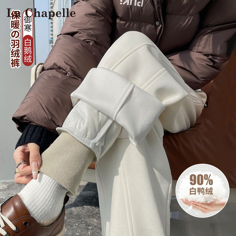 La Chapelle white duck down banana down pants Women wear fleece and warm Harbin straight-leg cotton pants in winter