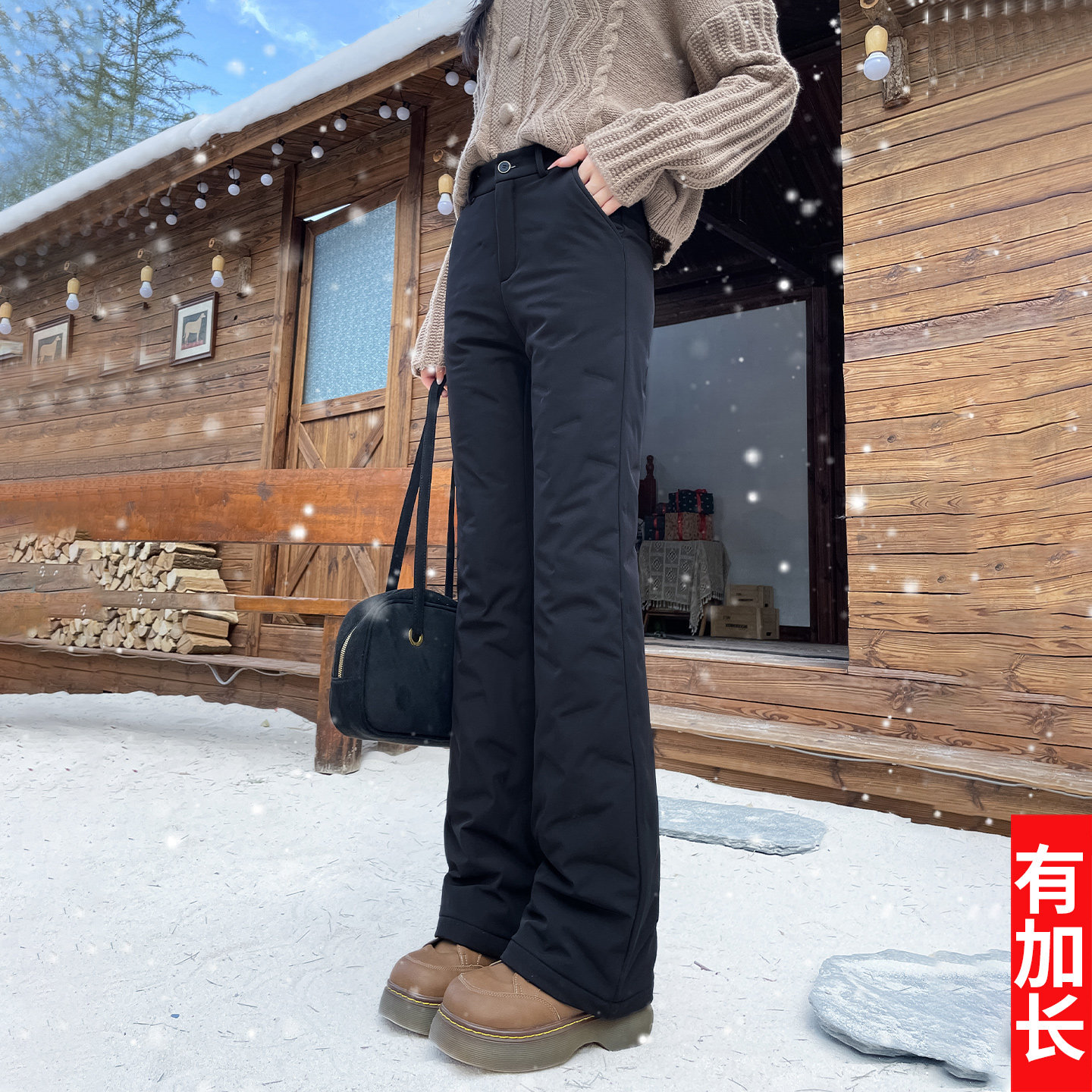 Waterproof flared down pants, women wear white duck down in winter, warm and slim, and elongated Harbin bootcut cotton pants