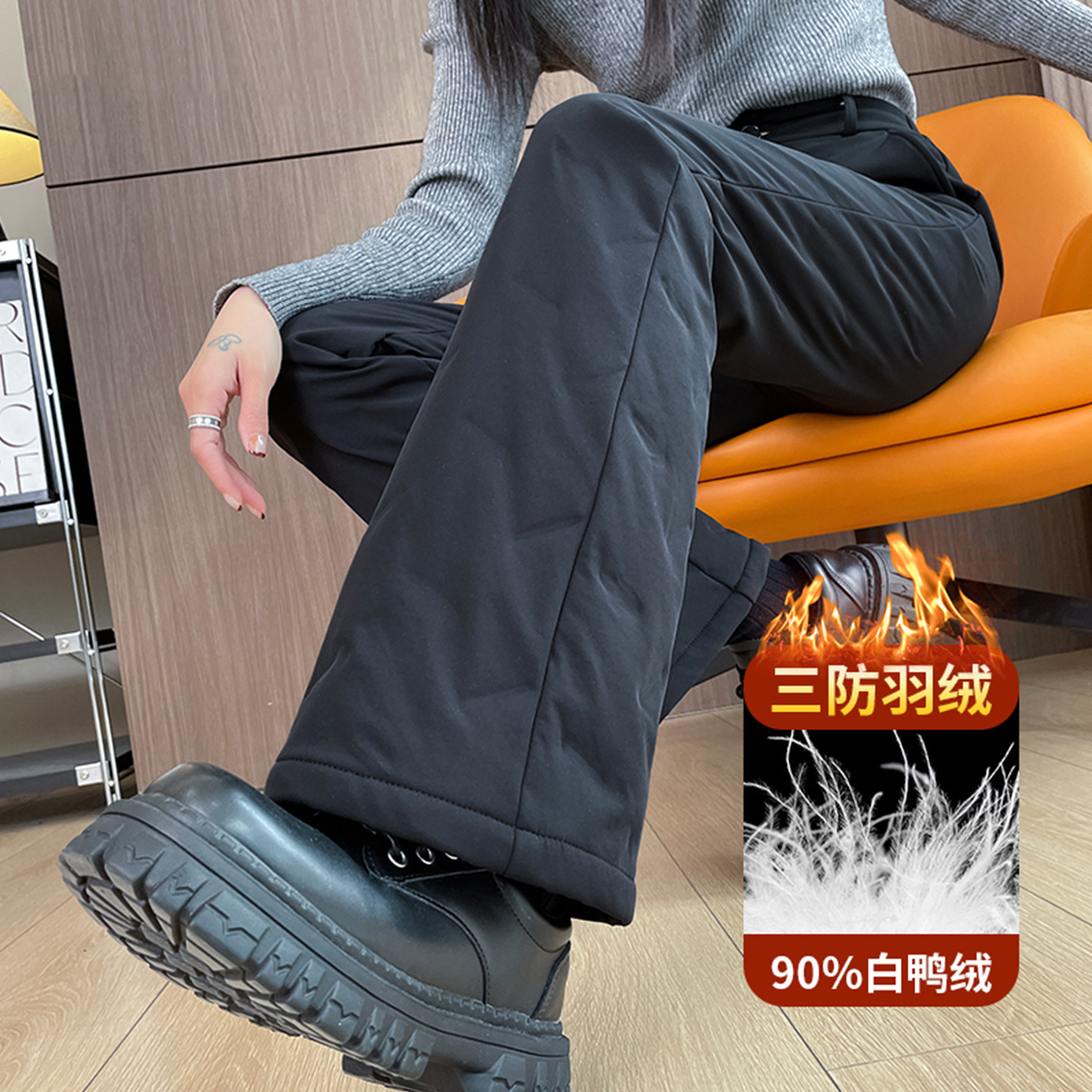 Yalu's new down pants for the winter of 2025 are worn by women wearing high-waisted slimming and thickened white duck down warm cotton pants for women