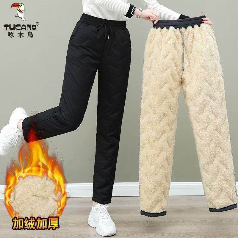 Woodpecker down cotton pants for women to wear 2025 new warm pants and women's fleece and thickened cold-proof casual pants