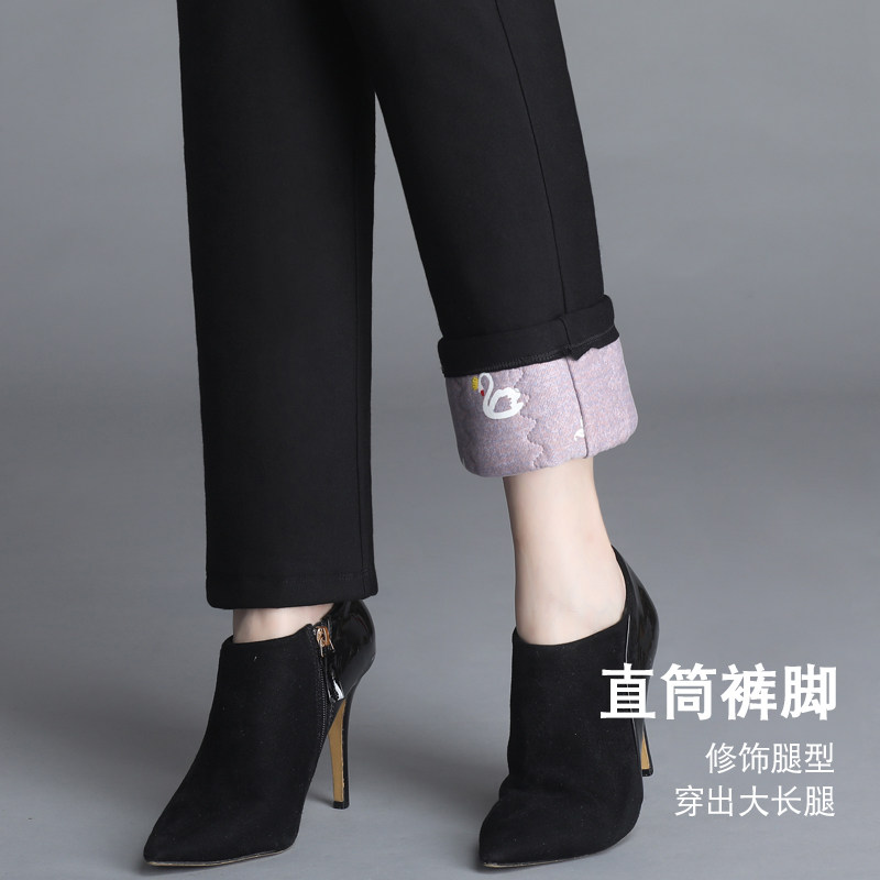 Silk cotton pants, women's outerwear, high-waisted, thickened warm cotton pants, elastic slimming, women's plus-size plush straight-leg trousers, winter
