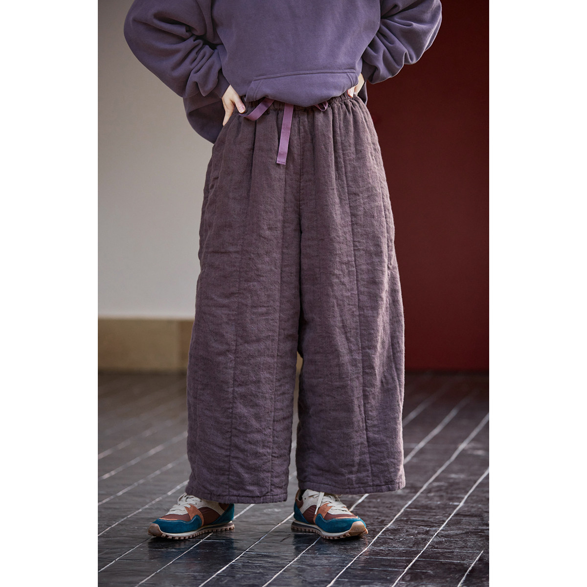 An old original [folk art] winter lilac purple linen brushed high-quality warm elastic waist cotton pants 8583-1B