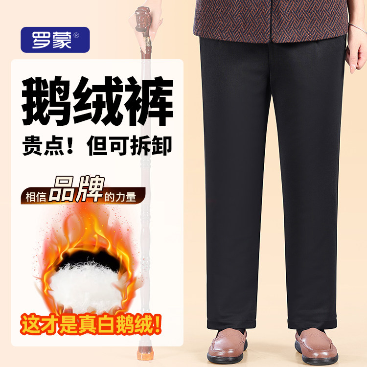 Romon brand white goose down down pants for the elderly women detachable winter thickened plus size grandma warm cotton pants winter