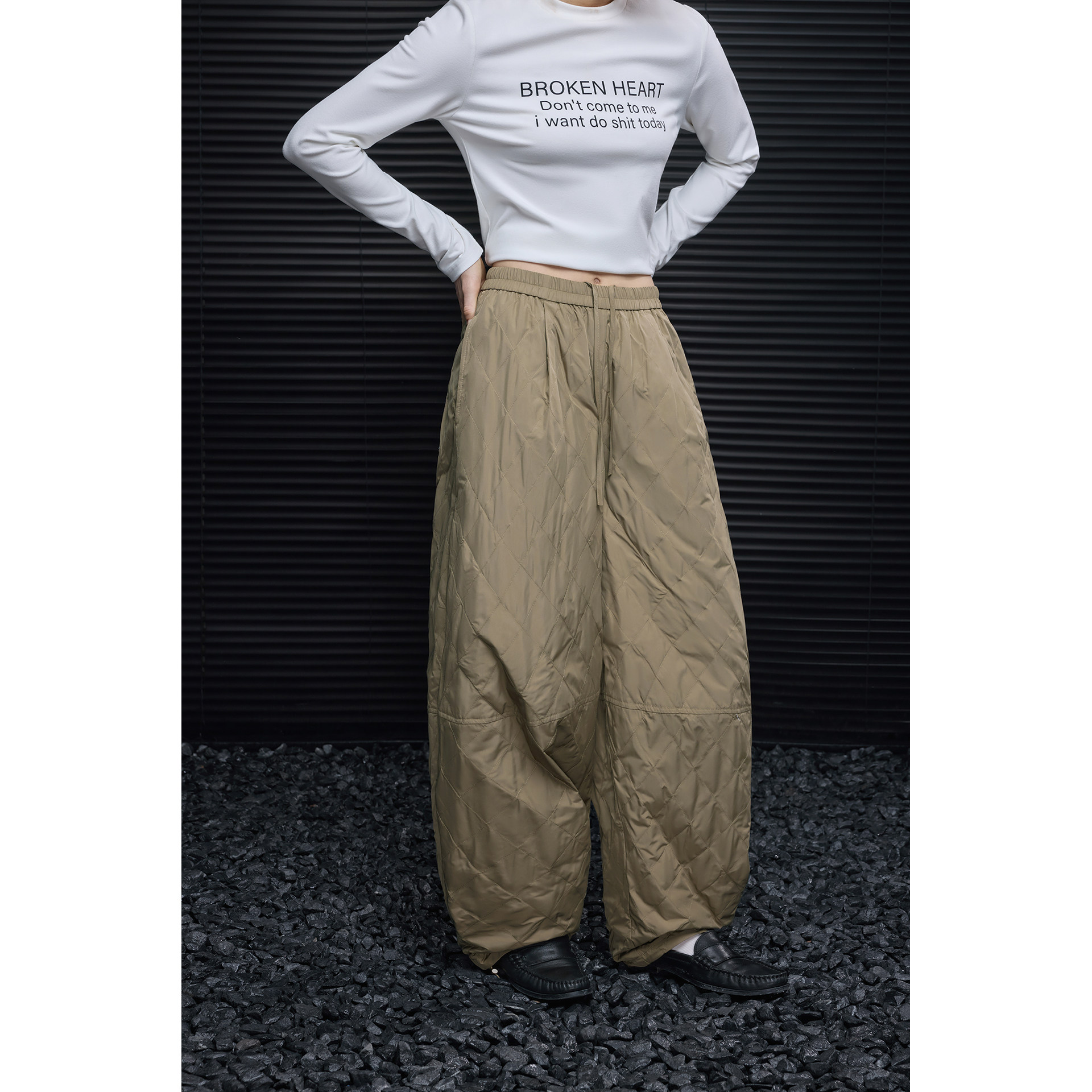 moment khaki green down pants slacks women's 2025 autumn and winter new wide-leg pants are loose, warm and fashionable and unique