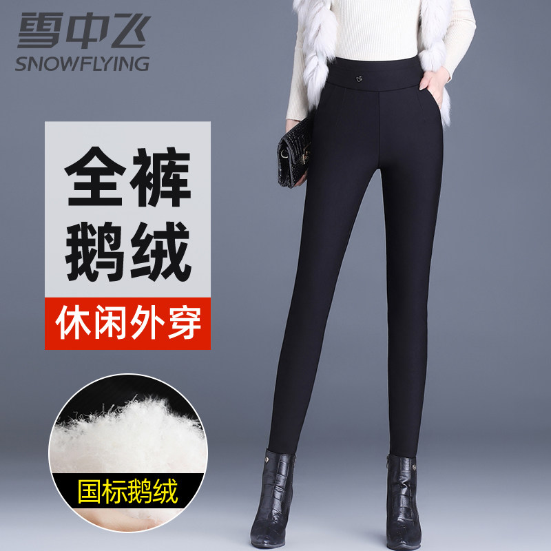 Down pants in the snow for women wear fashion 2025 new winter thickened warm small feet plus-size white goose down cotton pants