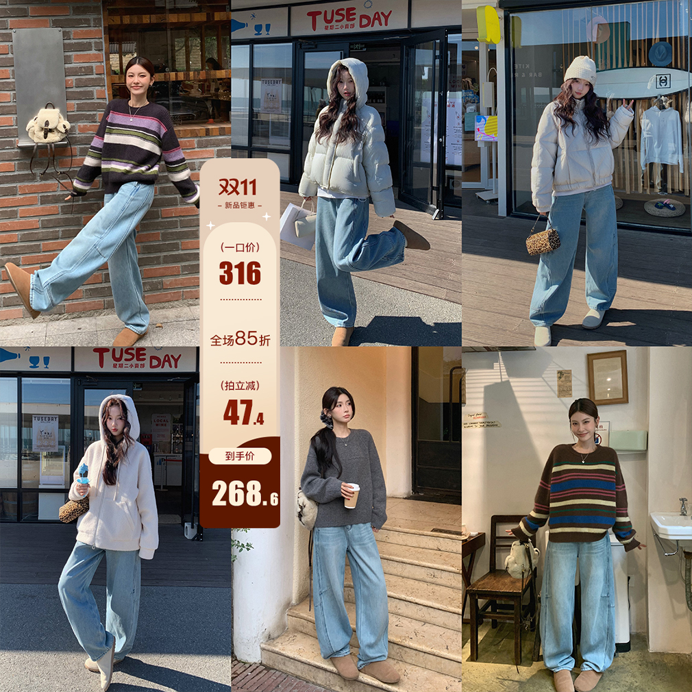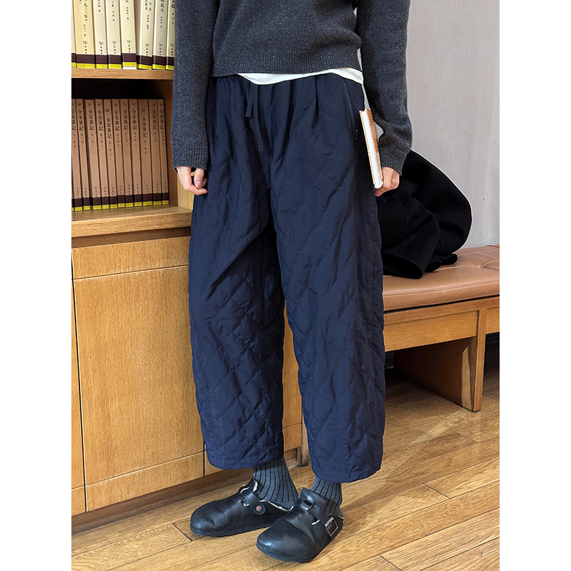 Zhou Langqing blue loose warm cotton pants women's 2025 new autumn and winter casual straight cropped wide-leg pants