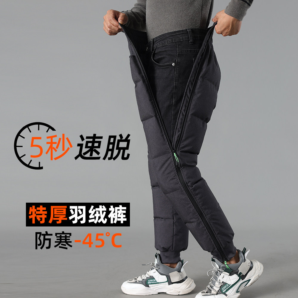 Down pants for men and women, wear high-waisted cold storage cycling pants, side zipper quick-release winter outdoor knee pads, skiing