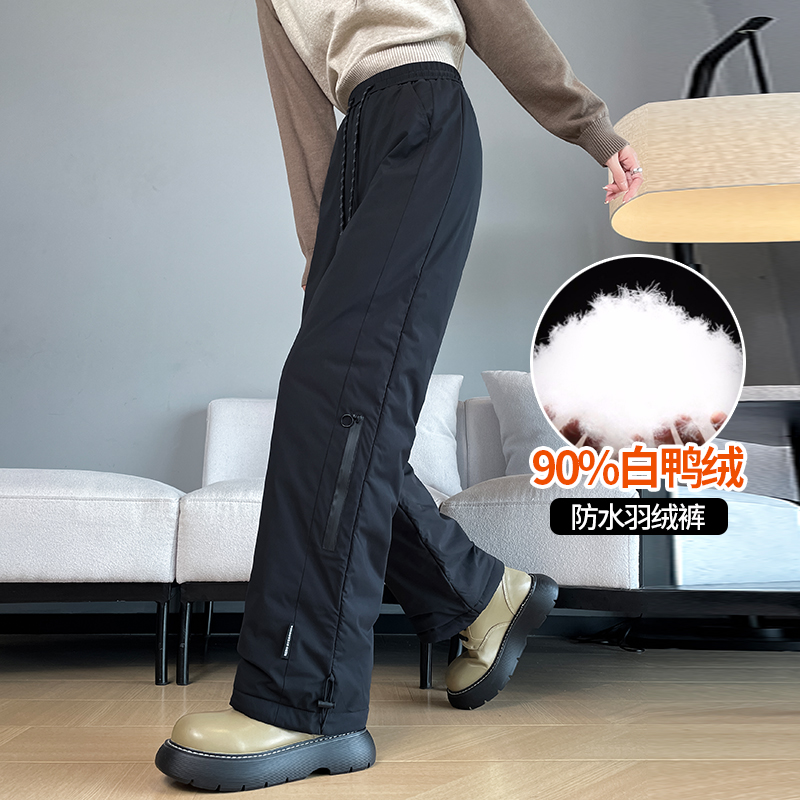 Thickened waterproof down pants women's outerwear winter 2025 new Northeast minus 40 degrees loose straight Harbin cotton pants
