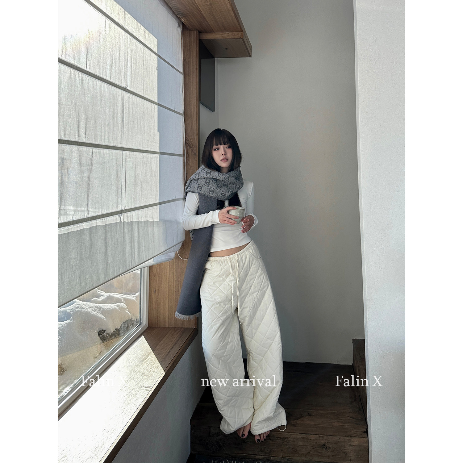 Zhou Langqing Small man textured cotton pants women wear padded straight-legged leggings in winter to keep warm and slim pants