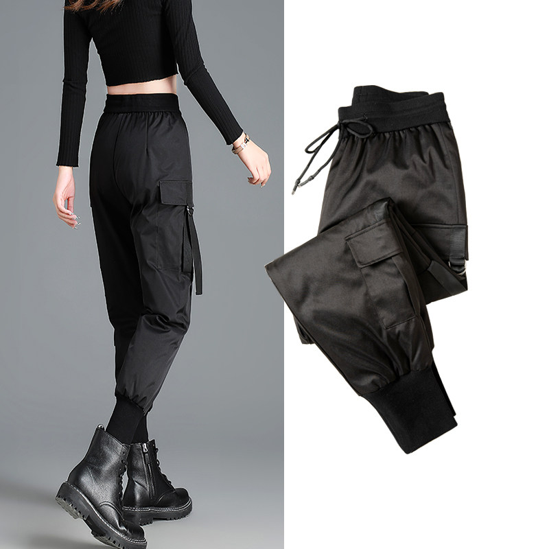 Down pants, women's outerwear, winter 2025 new fashion white duck down extended cargo pants, boots, pants, fleece and thickened cotton pants
