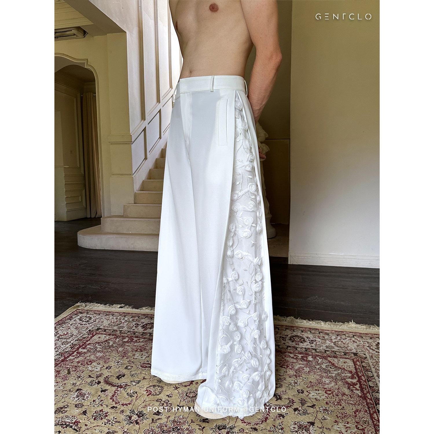 "JEYKOCO" niche design lace flower stitching casual wide-leg pants men's layered suit skirt