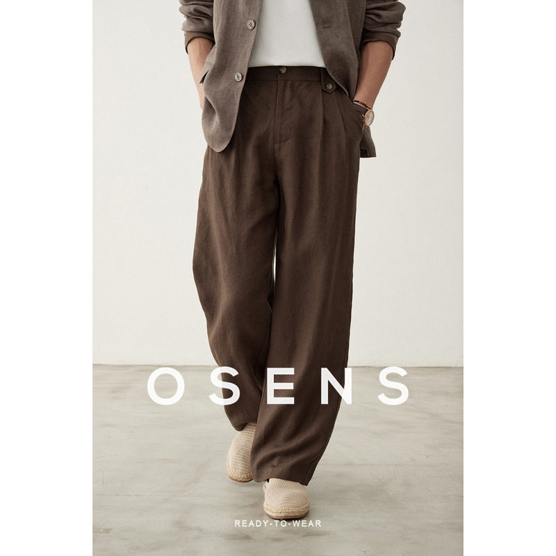 OSENS relaxation men's wide-leg trousers 100% linen old money style elastic waist versatile straight leg slacks summer