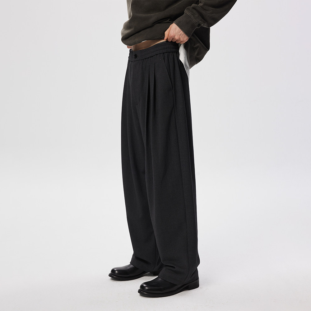 Hong Kong-style ins trousers men's autumn loose straight wide-leg drop floor-length slacks non-ironing white suit trousers