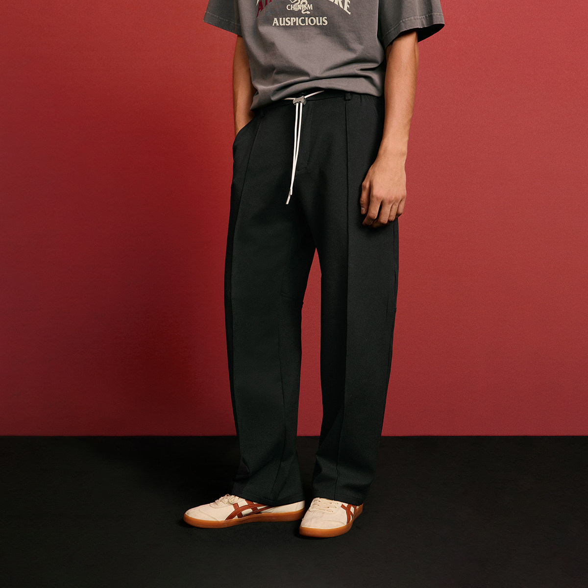 CHINISM丨CH Black drape straight trousers men's new autumn slacks simple and loose men's pants
